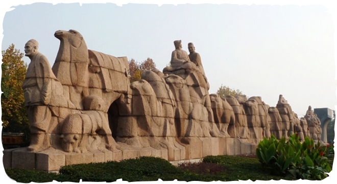 1984年,为让后人们将古人开创丝绸之路的艰辛壮举,西安美院雕塑系教授马改户受西安市政府委托,历时3年时间,设计创作了大型纪念性雕塑“丝绸之路群雕”。台湾著名雕塑家李再钤先生曾这样评价:“在横贯西安东西的那条大马路西端,也就是古代丝路的起点处,踏踏实实地做了一件够壮丽、够雄伟的大作品”。这件雕塑充分地表露了粗狂浑厚和豁达开朗的格调,表现汉唐古意,让过路行旅引起了无尽历史情怀,仿佛置身于唐代长安街市中。