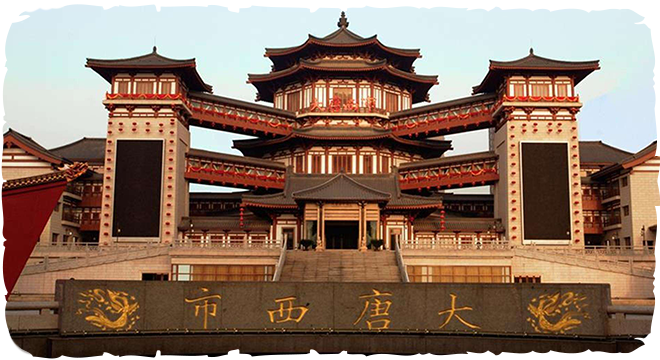西市位于唐长安皇城的西南方(即今天的劳动南路和东桃园村之间),始于隋,盛于唐,当时的西市商业贸易西至罗马、东到高丽),是当时占地面积最大、建筑面积最大、业态最发达、辐射面最广的世界贸易中心、时尚娱乐中心和文化交流中心。