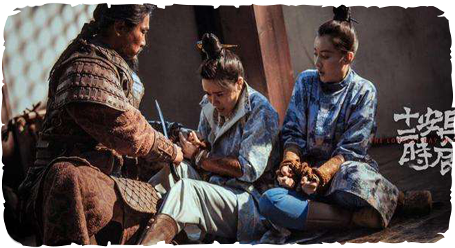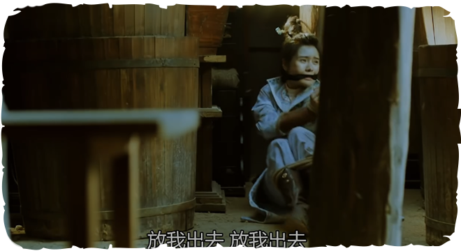《长安十二时辰》剧照——王韫秀被熊火帮绑在靖安坊“移香阁”内