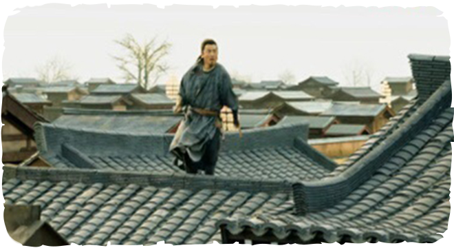 《长安十二时辰剧照》张小敬追击狼卫到敦义坊,朝四个方向眺望