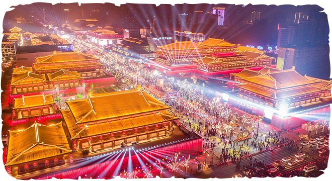 西安大唐不夜城·现代唐人街位于西安曲江新区举世闻名的大雁塔脚下作为首批改造提升试点的11条步行街之一,西安大唐不夜城·现代唐人街在提升改造方面有着自己的独到之处,该街区是以盛唐文化为背景,以唐风元素为主线,以文化体验消费为特征,坐落了西安音乐厅、陕西大剧院、太平洋影城、西安美术馆四大文化场馆,打造了《再回大雁塔》《再回长安》两大常态驻场演出,是曲江国家5A级旅游景区的重要组成部分,也是西安旅游文化的重要承载区。