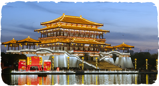 兴庆宫是唐玄宗做藩王时期的府邸,唐玄宗登基后大规模扩建,是开元、天宝时代的中国政治中心所在,也是唐玄宗与爱妃杨玉环长期居住的地方。