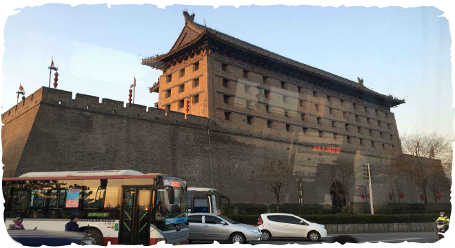 安远门,西安城墙的正北门,位于北城墙中部偏西。明洪武七年至十一年(1374年至1378年),向北扩建西安府城时新建安远门,后历清代、民国,沿袭至今。今安远门存瓮城、箭楼及二重门洞,另于城门两侧各开辟两个券洞,供车辆行人通行。
